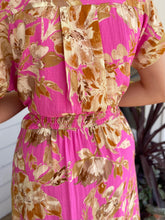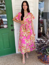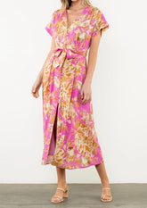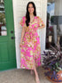 PINK FLORAL PRINT BUTTON UP SHORT SLEEVE MAXI DRESS
