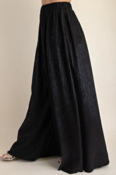 BLACK METALLIC PLEATED WIDE LEG PANTS