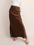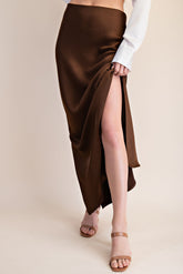 BROWN SATIN SIDE-SLIT MIDI SKIRT