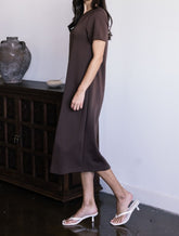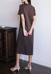 COCOA PCILL BUTTER MODAL SHORT SLEEVE CONTRAST RIB NECK MIDI DRESS