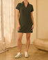 DARK OLIVE BRUSHED MODAL SPLIT NECK COLLARED MINI DRESS