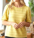 LEMON YELLOW TEXTURED STRIPE SHORT BALLON SLEEVE SWEATER TOP