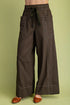 OLIVE LINEN CONTRAST STITCHING WIDE LEG PANTS