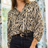 TAN/BLACK PRINTED LONG SLEEVE KAYLA TEXTURED TOP