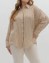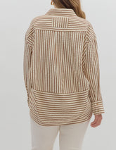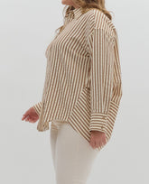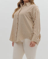 BROWN TEXTURED STRIPED PATTERN BUTTON UP LONG SLEEVE TOP