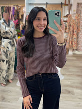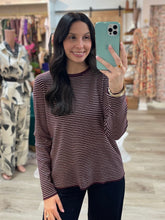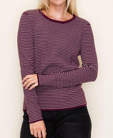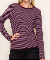 DARK PLUM PINSTRIPE LONG SLEEVE PULLOVER SWEATER