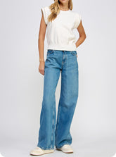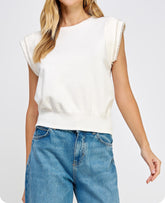 IVORY PEARL TRIM SLEEVELESS SWEATER TOP