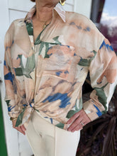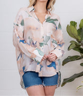MULTI COLOR WATERCOLOR ABSTRACT PRINT LONG SLEEVE BUTTON UP TOP