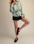 SAGE FRONT TIE DETAIL LONG SLEEVE SATIN BUTTON UP TOP