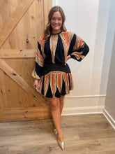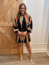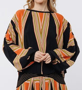 BLACK MULTI ABSTRACT GEO PRINT LONG SLEEVE KAROLINE BLOUSE