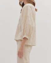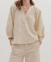 ECRU EMBROIDERED BOTANICAL PRINT 3/4 SLEEVE TOP