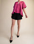FUCHSIA VNECK SHORT BUBBLE SLEEVE HIGH LOW TOP
