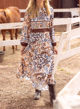 IVORY/BROWN/BLUE BORDER BOHO PRINT BLOUSE