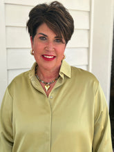 LIGHT MOSS SATIN PLACKET COVER BUTTON UP LONG SLEEVE TOP