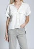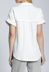 NATURAL BREEZY CRINKLE GAUZE SHORT SLEEVE BUTTON UP TOP