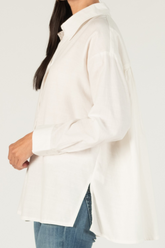 OFF WHITE LONG SLEEVE BUTTON UP SHIRT W/ PLEATED BACK DETAIL