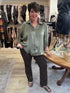 OLIVE BUTTON UP LONG FLOWY BATWING SLEEVE TOP