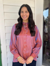 REFLECTIVE RUST BUTTON UP LONG BATWING SLEEVE TOP
