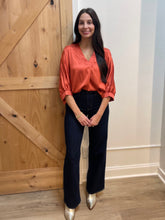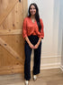 RUST SATIN V-NECK LOOSE FIT SHORT SLEEVE BLOUSE