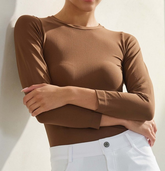 COFFEE ONE SIZE SEAMLESS ROUND NECK LONG SLEEVE TANK