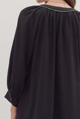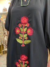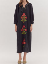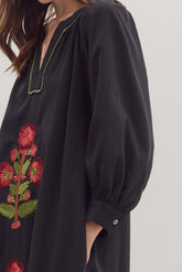 BLACK FLORAL EMBROIDERY CONTRAST TRIM LONG SLEEVE MAXI DRESS