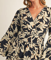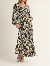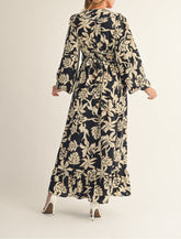 BLACK FLORAL PRINT WAIST TIE WRAP MAXI DRESS