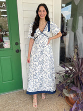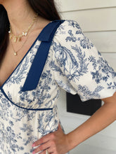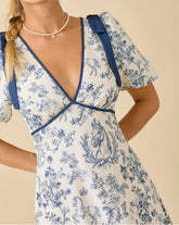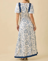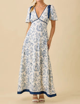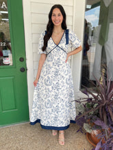 DARK NAVY FLORAL PRINT DEEP VNECK BUBBLE SLEEVE MAXI DRESS