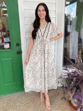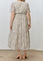 MOCHA MULTI FLORAL PRINT VNECK SHORT SLEEVE MAXI DRESS