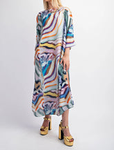 MULTI COLOR PRINT PULL OVER MAXI KAFTAN DRESS