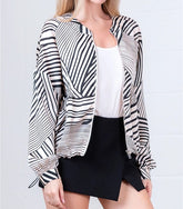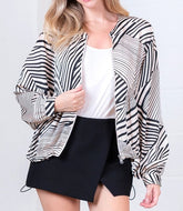 CREAM/BLACK STRIPE PRINT LONG SLEEVE ZIP UP JACKET