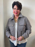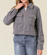 CHARCOAL GREY COLLLARED NECK LONG SLEEVE ZIP UP JACKET