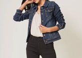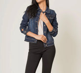 Comfortable and stretchy fitted blue denim jacket!