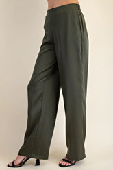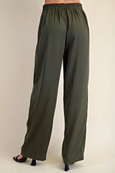 OLIVE HIGH-WAISTED WIDE LEG SATIN PANTS
