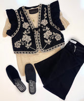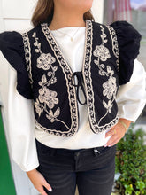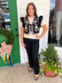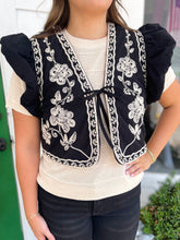 BLACK EMBROIDERED RUFFLED SLEEVE CROPPED VEST